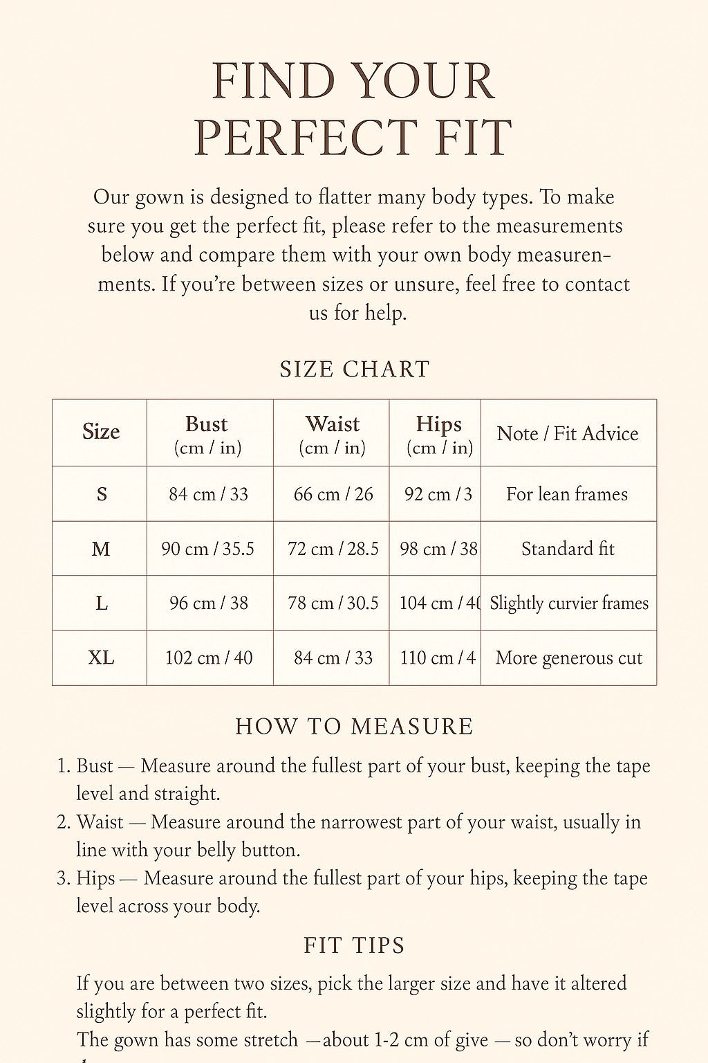 Height: 170cm/5’7, Bust: 74cm/29in, Waist: 56cm/22in, Hips: 86cm/34in.